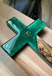 I asked a friend to cut up the wood into slabs. I took them home and sliced them into strips. I wasn’t sure how I’d use them, I just knew the lines left behind from the fungus made the wood very attractive. It wasn’t until I got interested in making crosses from wood and epoxy that it hit me – the spalted wood was perfect for this creation.